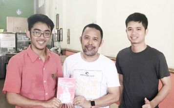 PINISI.co.id- Tokoh Seniman dan sastrawan kota Makassar, M.Amir Jaya dan M.Anis Kaba, memberikan...