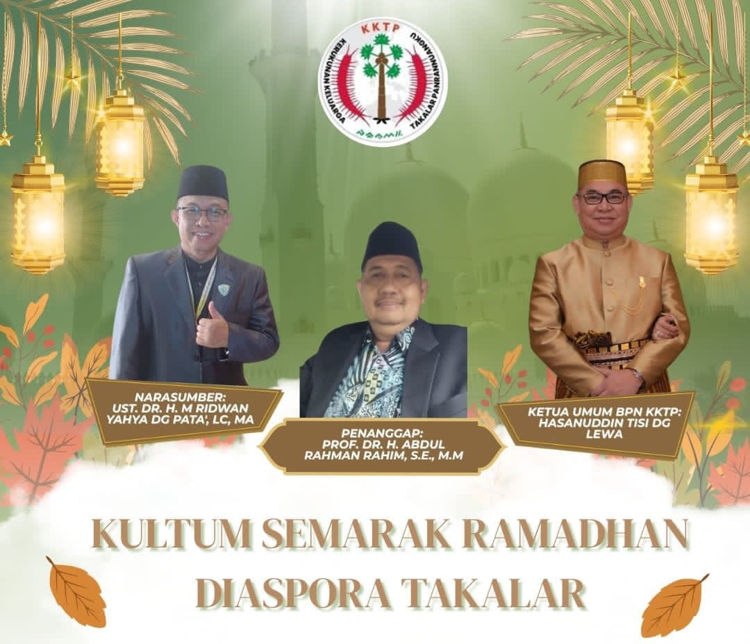 Panitia mengumumkan bahwa Kultum Semarak Ramadhan sesi ketiga akan digelar pada Ahad, 15 Maret 2026, dengan menghadirkan penanggap Prof. Dr. Ir. Jamaluddin Jompa, M.Si., Rektor Universitas Hasanuddin. Acara ini terbuka untuk umum dan kembali mengundang seluruh warga Diaspora Takalar serta KKSS, demikian disampaikan Sekjen BPN KKTP, A. Muktadir Taiyeb Dg Rurung. (amt)