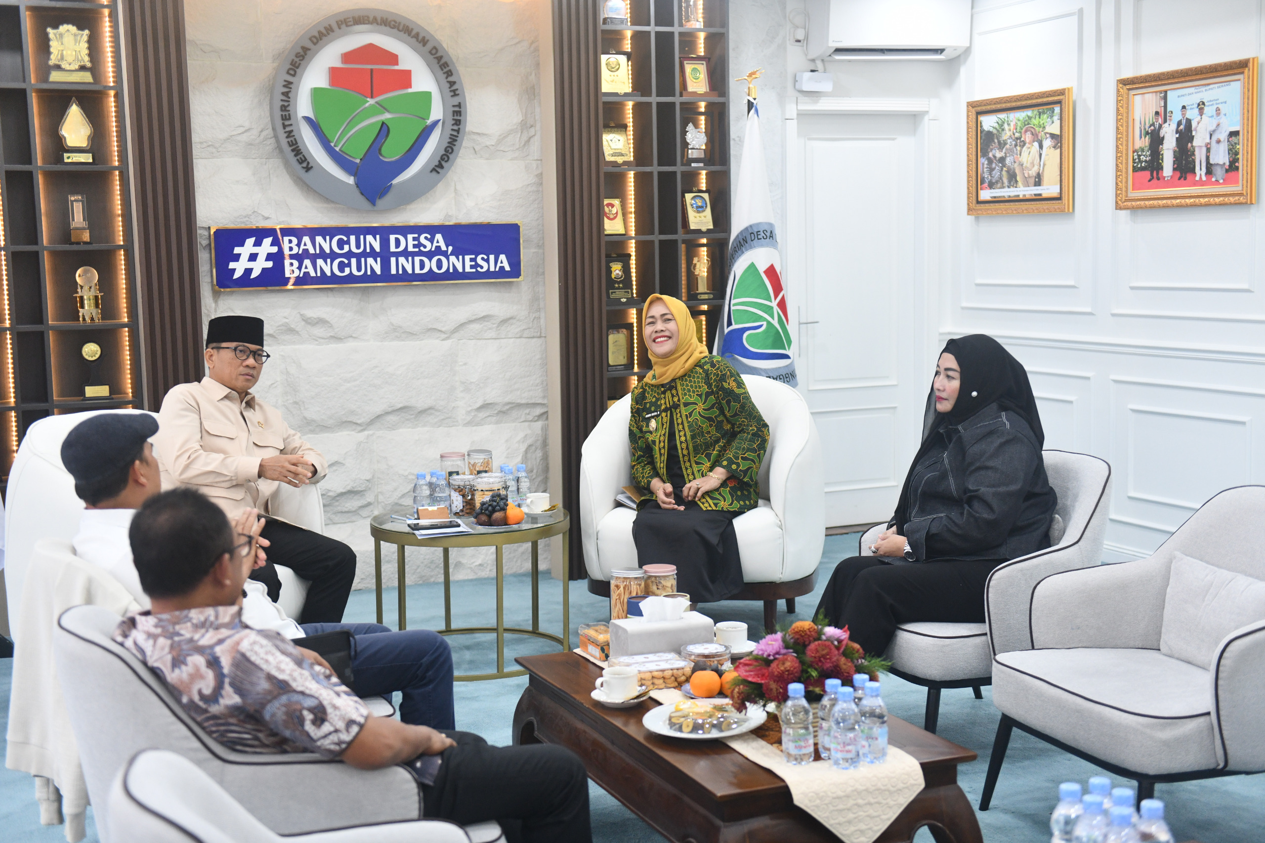 “Jangan sampai desa-desa di Kabupaten Majene ini jadi penonton dengan program-program prioritas Bapak Presiden, salah satunya MBG. Buat saja desa tematik, dipetakan saja desa A potensinya apa, misal 10 desa ikan nila, 10 desa ikan lele, 10 desa ayam petelur. Maksud saya jangan sampai kebutuhan MBG itu Bapak/Ibu ambil dari luar daerah/kabupaten,” papar mantan Wakil Ketua MPR RI itu saat menerima audiensi Wakil Bupati Majene Andi Ritamariani, di ruang kerjanya, Kemendes PDT, Kalibata, Jakarta Selatan, Kamis (9/4/2026).