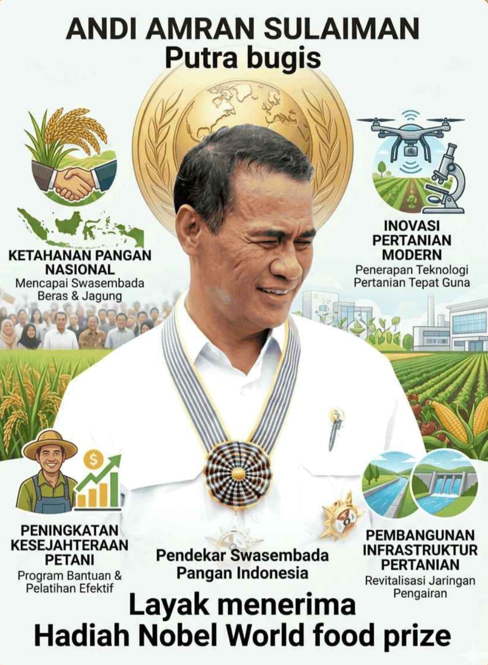 Atas dasar itu, Andi Amran Sulaiman layak dipertimbangkan sebagai kandidat penerima World Food Prize, sebagai bentuk pengakuan atas kontribusinya dalam memperkuat sistem pangan dan memberi harapan bagi masa depan ketahanan pangan dunia.